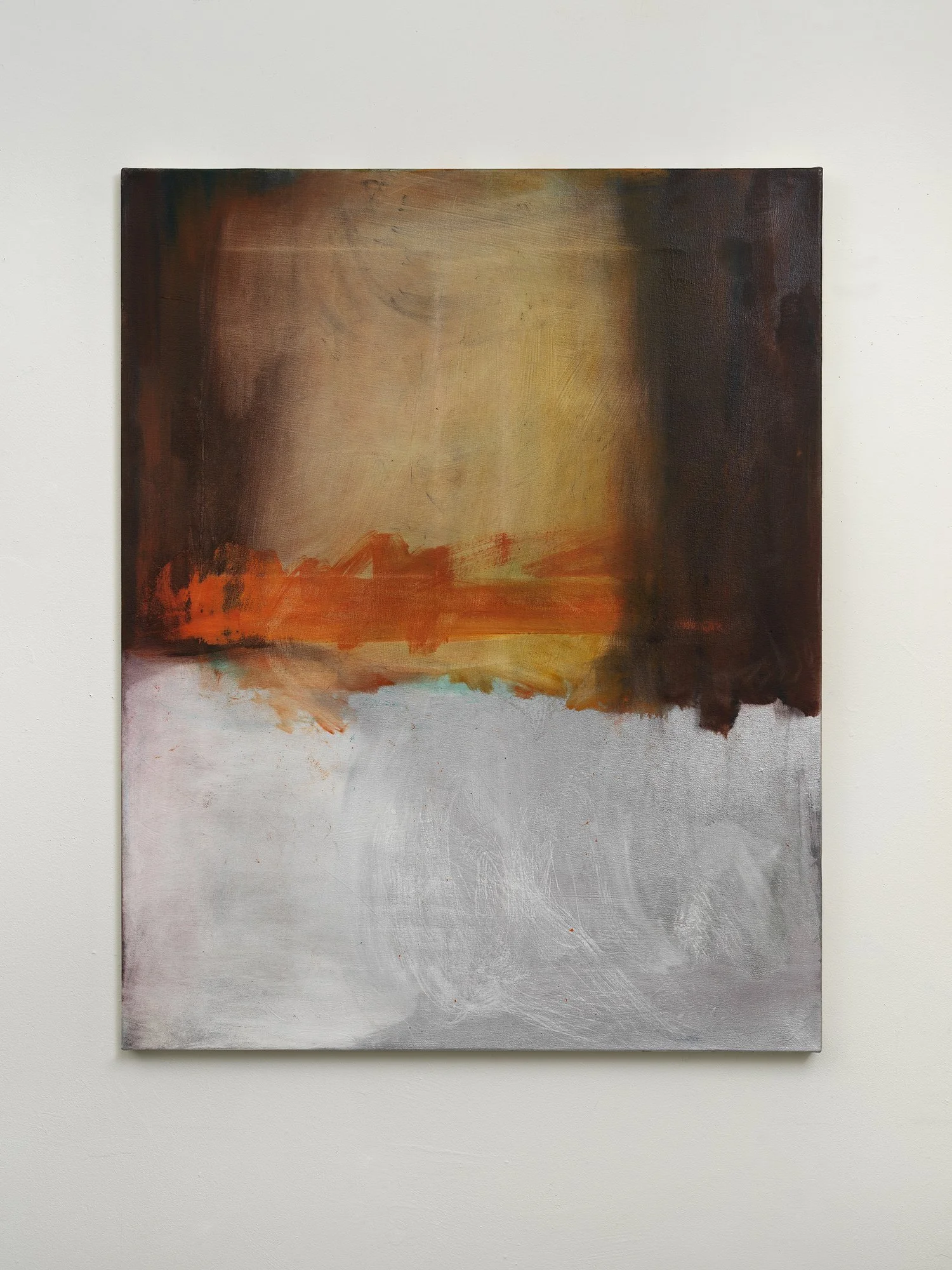 The paintings are reductive but not minimalist. Firmly set in the painting tradition, they embrace their objectness by leaving traces of their support and the history of their making. The act is performative; the medium is the message. They offer a placeholder for my subconscious and embody the many years of practice that lead to accumulations of choices made, conscious or not. Among other things, while they are being made, the painting is the subject. After that, TBD.