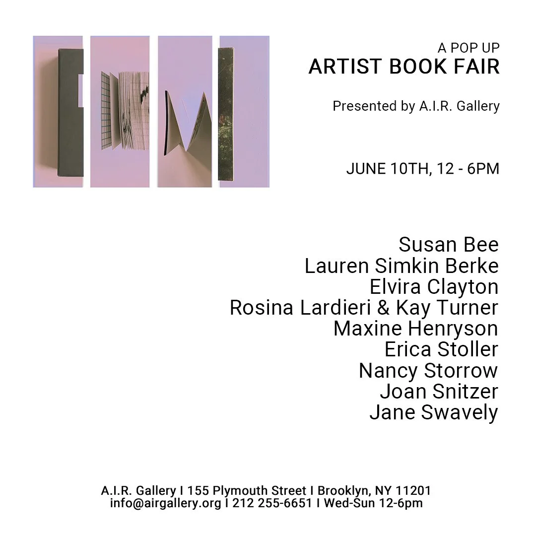 There is a long tradition of A.I.R. artists creating artist books, as well as a long history of A.I.R. Gallery celebrating artist books and publications. Often this history is seen to start with the 1980 exhibit “Speaking Volumes: Women Artists’ Books,” curated by Lucy Lippard. We are pleased to continue A.I.R. Gallery's commitment to highlighting the artist book form by presenting a pop-up artists’ book fair of current women and non-binary A.I.R. artists. Organized by Maxine Henryson and Lauren Simkin Berke, and exhibiting the work of ten artists, this one day fair will show a diverse collection of both editioned and unique artists’ books. The books on display will include work in drawing, painting, photography, printmaking, and sculpture.