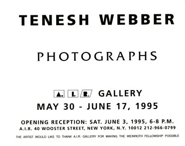 Tenesh Webber works in large scale black and white photography. Through the juxtaposition of photographs of symbolically charged objects and photograms of geometric shapes, she explores the presence of the object and issues of memory.