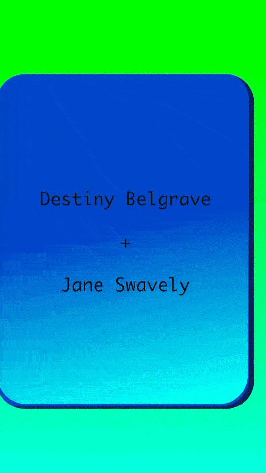 Jane had been addressing 'green screens' in previous work, effecting a luminous glowing color in oil paint on canvas, and thought this setting would be a perfect base for Destiny to project onto. Their collaboration has manifested a consideration of the other in absence or distance.