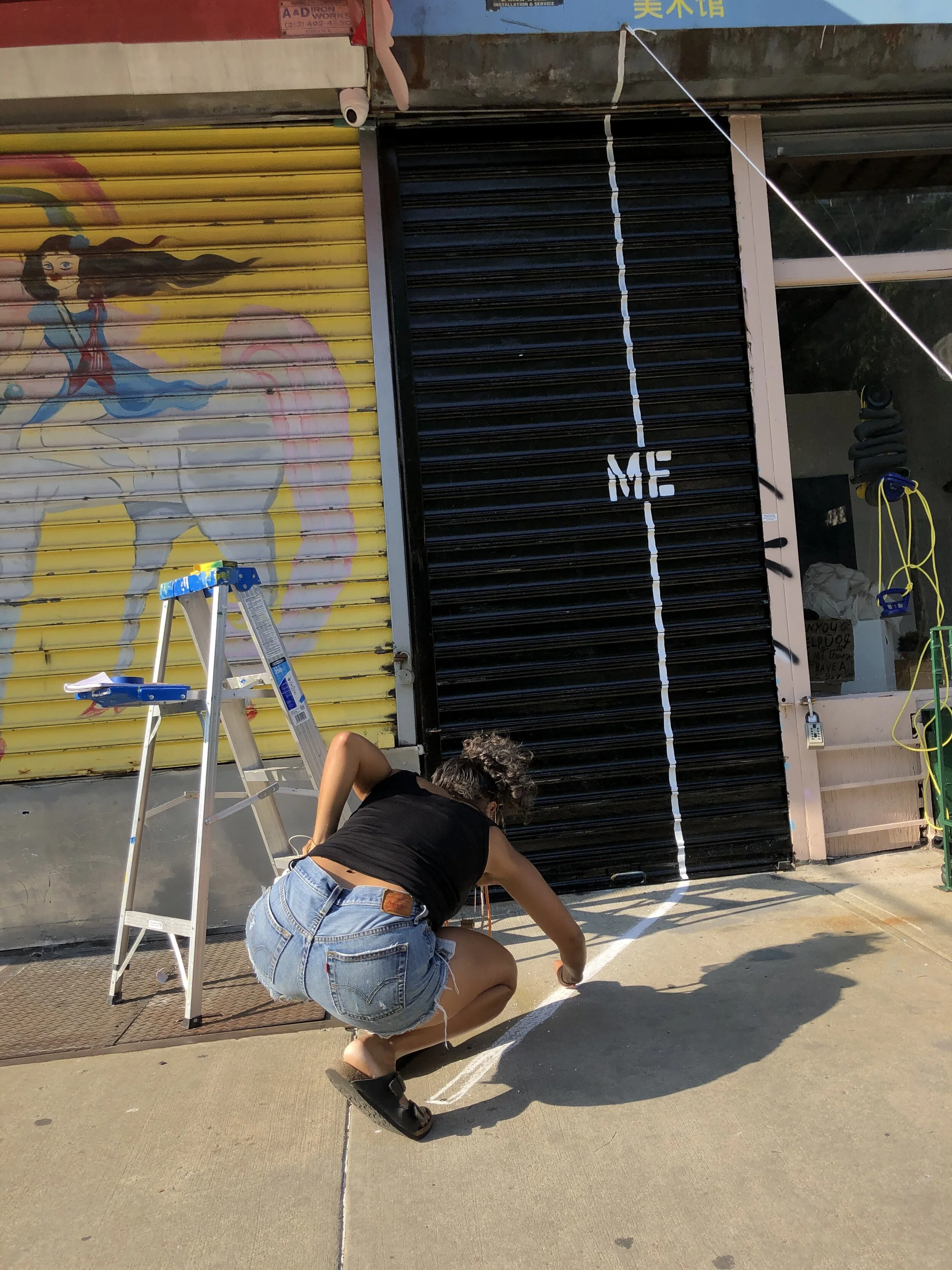 Cor-relation. Is an intervention that acts as an expansion on both a printed piece I just did this May titled Stoop Hang on ideas of interdependency/type of relationships and my conversation with Carolyn around our current form of relating to one another as well as her text piece CORRAL. I was meditating on how we often view a corral from a frontal view and wonder how we can create spaces of openings for new possibilities. Can we flip it so the ground and the sky become a form of escape? Additionally, I was interested in the correlation of the sidewalk (a public space) to the door (as a pathway to the private space) of the gallery and the space in-between. I want to inhabit this in-between through my practice.